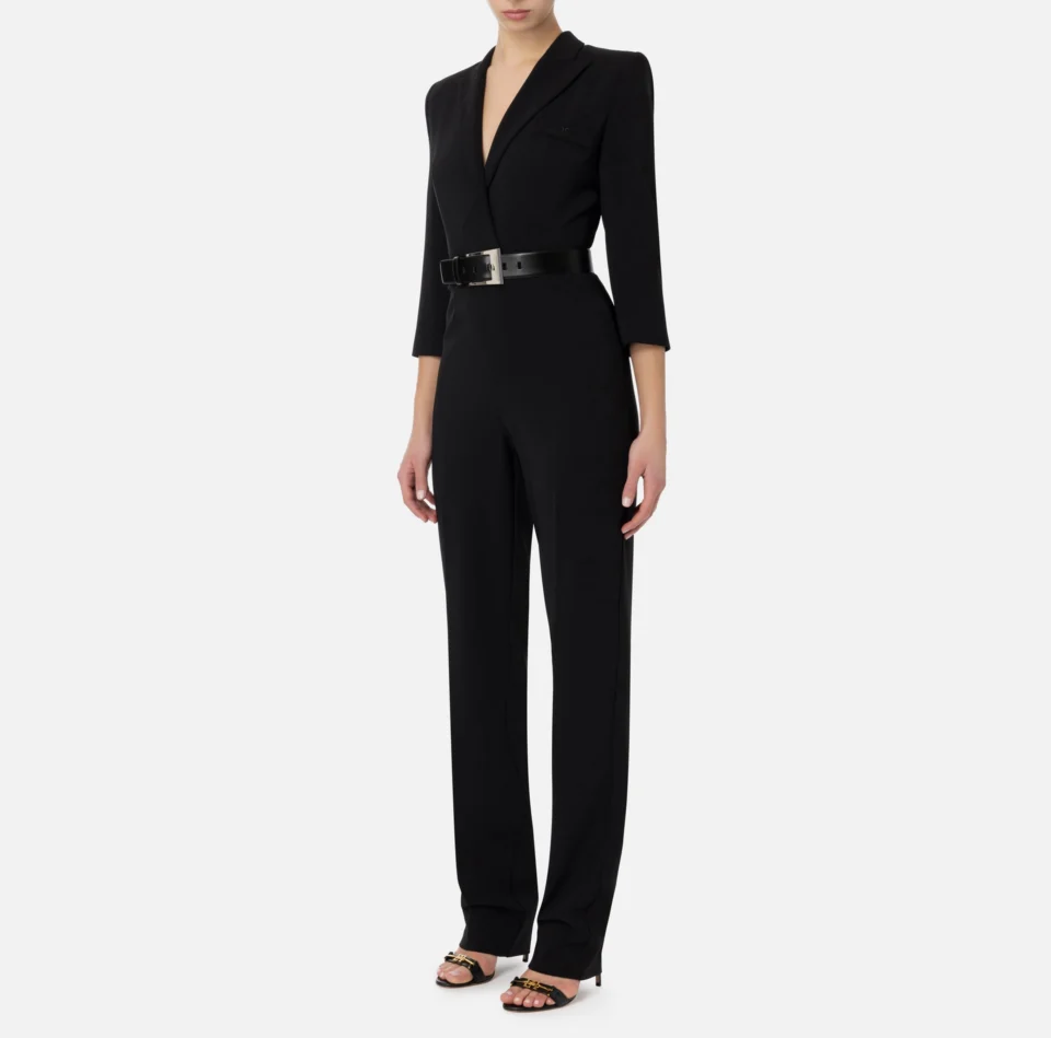 Elisabetta Franchi camel cigarette trousers with gold logo