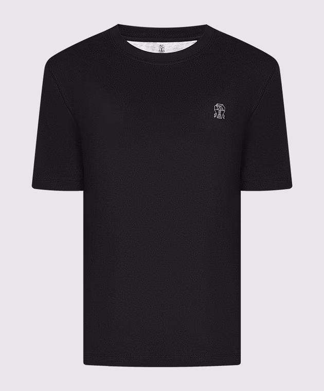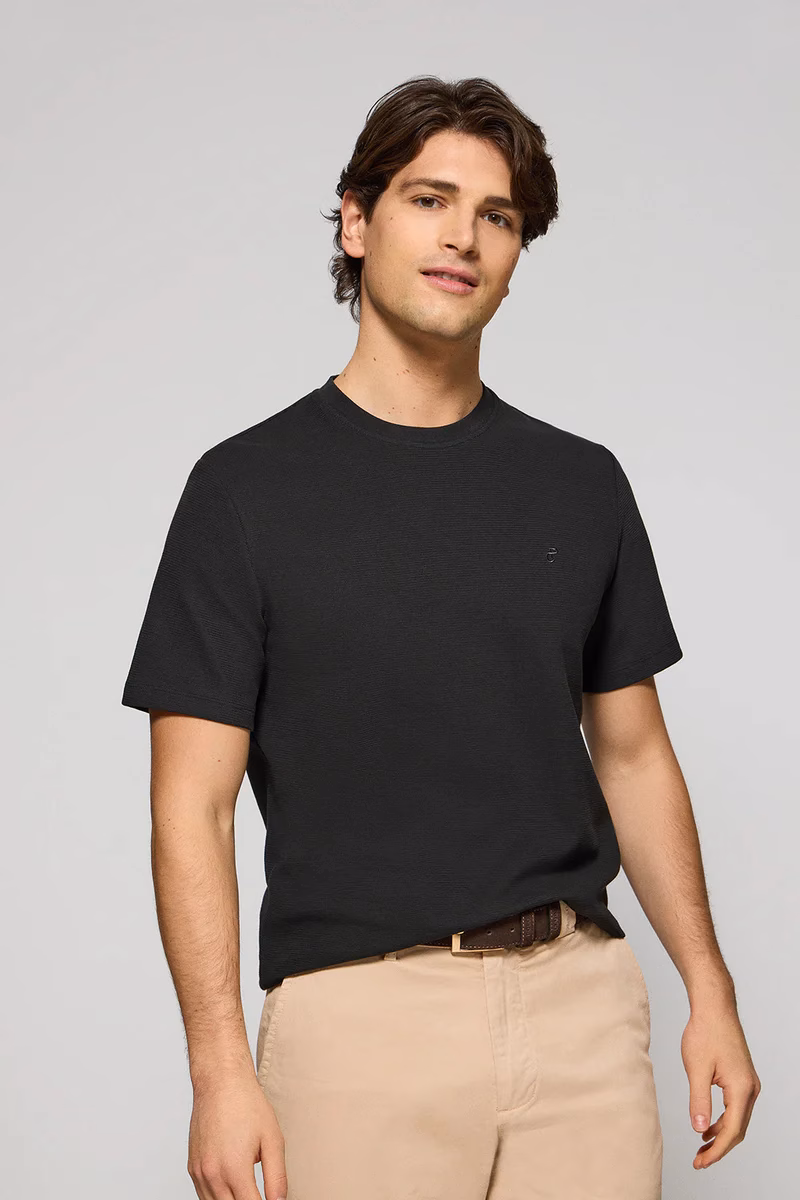 Black microstructured tee with PC embroidered monogram