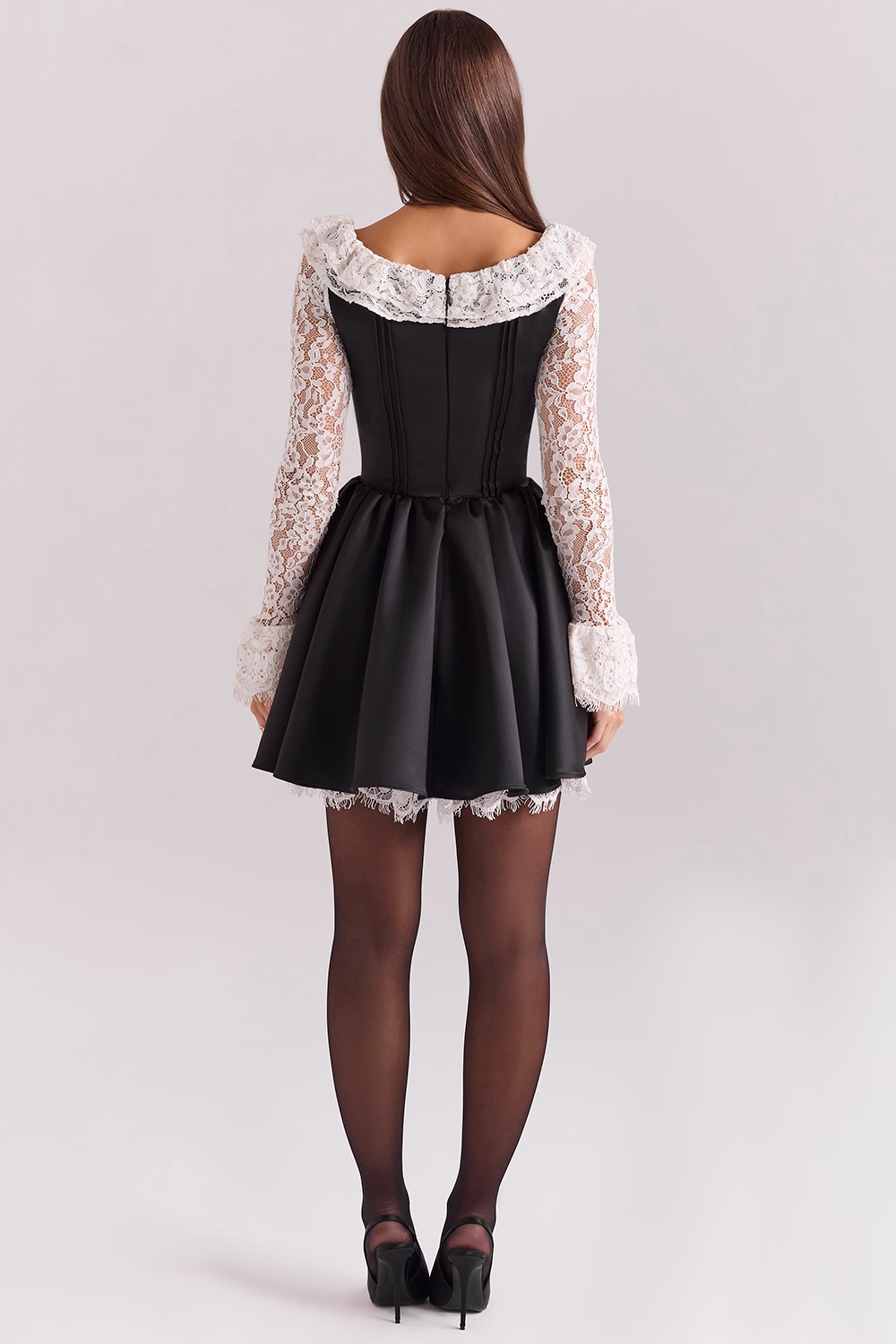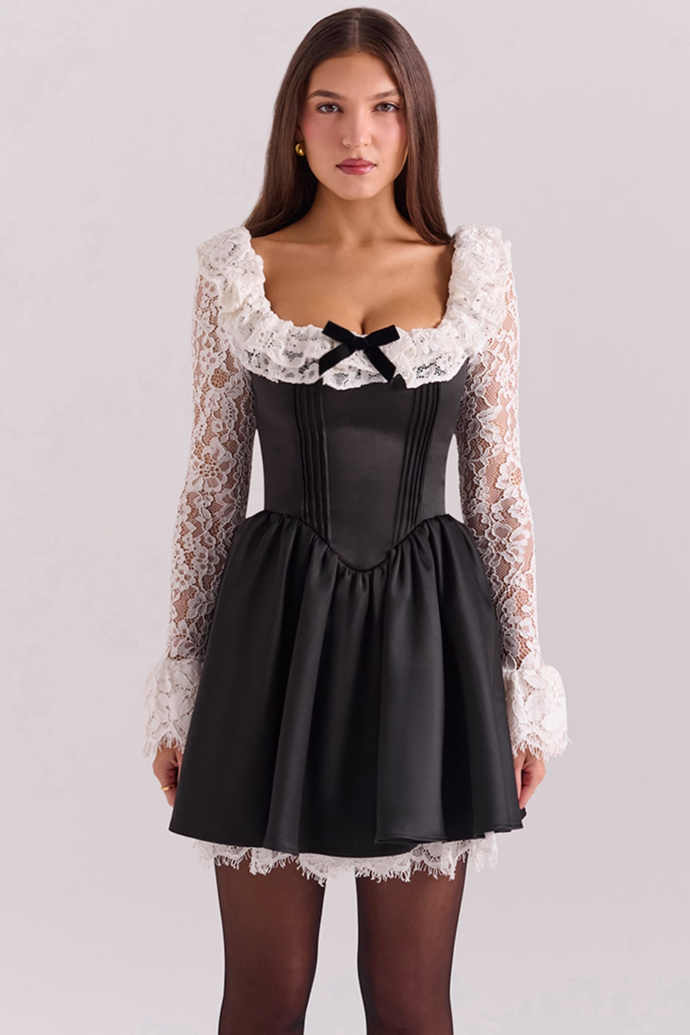 The ‘Cleora’ Black Mini Dress by House of CB is a dreamy blend of romance and style! With delicate lace sleeves, a playful flared skirt, and a charming ruffled neckline adorned with a velvet bow at the front, Cleora is designed to enchant. The back zip makes it easy to slip into, so you’re instantly ready for candlelit dinners, chic parties, and all the magical moments in between. Just add a bold lip, and let ‘Cleora’ do the rest!