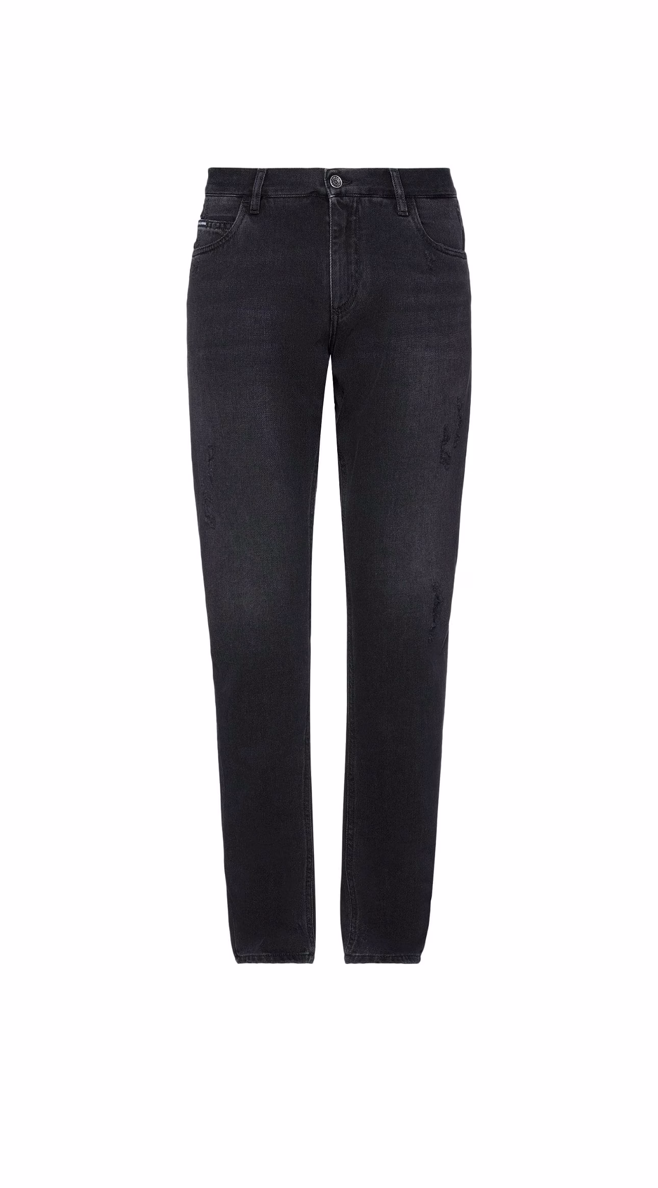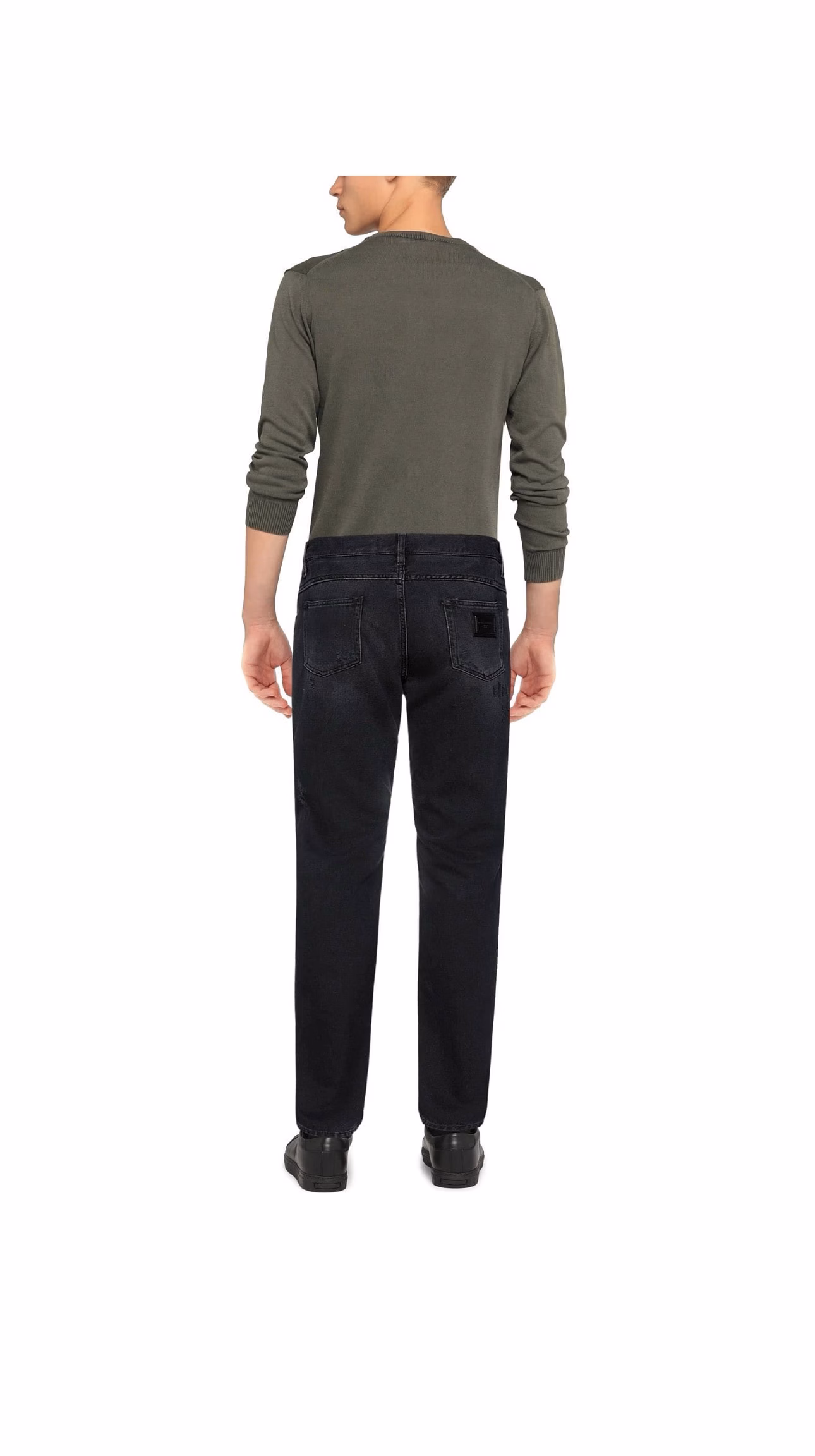 These straight-leg jeans from DOLCE & GABBANA are crafted from denim with cow leather and zamak hardware. The design features a distressed, colored wash, mid rise, belt loops, a regular fit, one-button closure, zipper fastening, and five pockets. These jeans contain non-textile parts of animal origin.