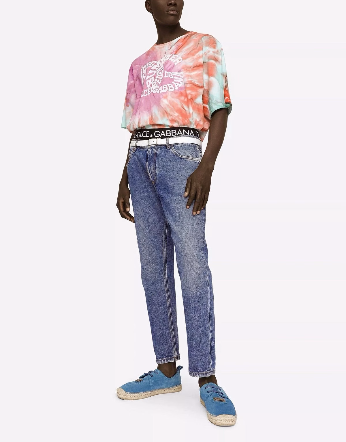 Experience the playful and vibrant energy of the Dolce & Gabbana “Eden Secret Garden” Collection with our Loose Blue Wash Jeans. Made from high-quality denim, these jeans feature a five-pocket design and a unique mix of floral and animal prints, perfect for adding personality to any outfit. Elevate your wardrobe with these eccentric and stylish jeans.