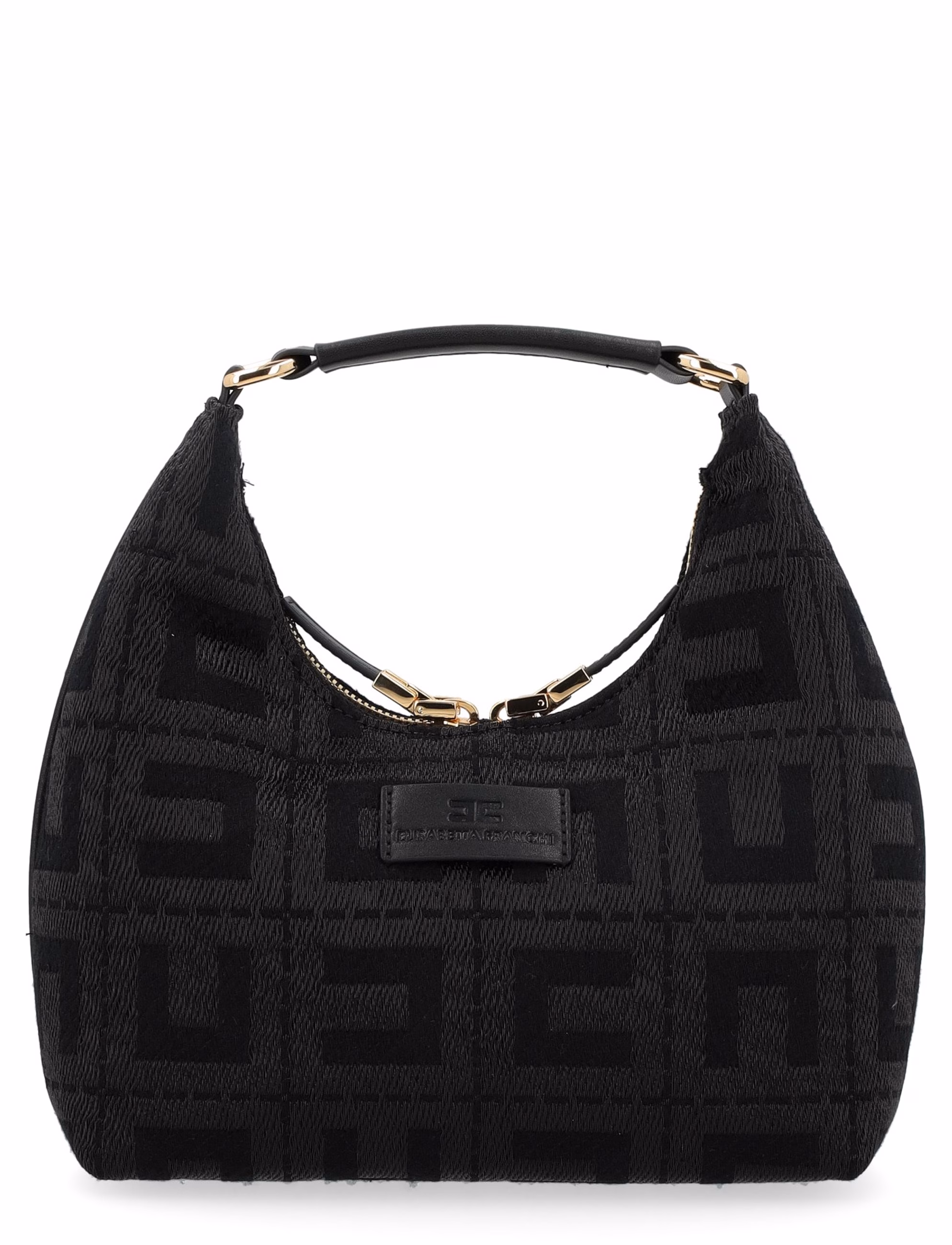 Borsa Elisabetta Franchi modello Hobo realizzata in tessuto jacquard color nera.