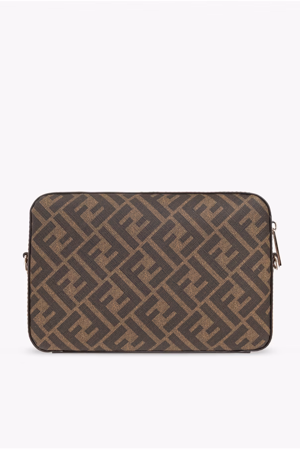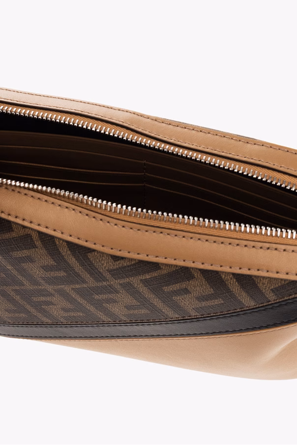 Brown shoulder bag from Fendi. Made of calf leather with monogram-printed canvas trims, this model features a zip fastening, detachable, adjustable shoulder strap and one internal compartment with one slip pocket and six card slots.