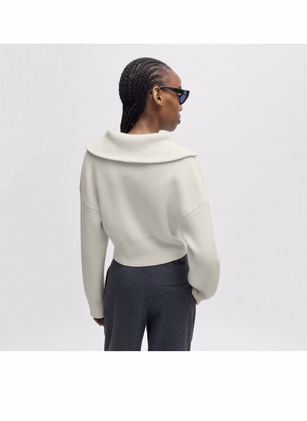 An oversize-fit sweater blended with cashmere by HUGO. This cropped layer features a zip neck with a stacked-log