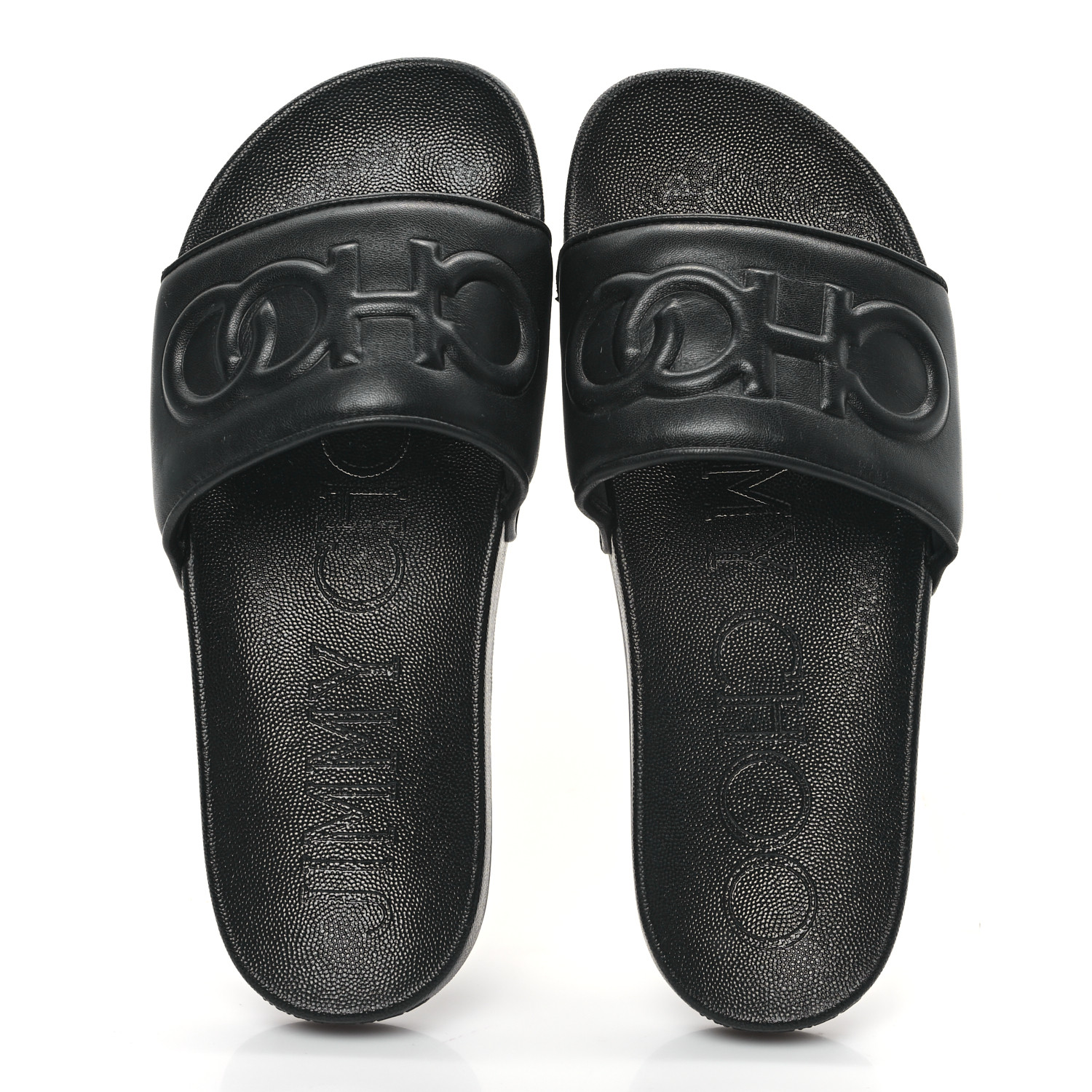 Jimmy Choo Nappa Leather with Embossed Logo Azari Slides