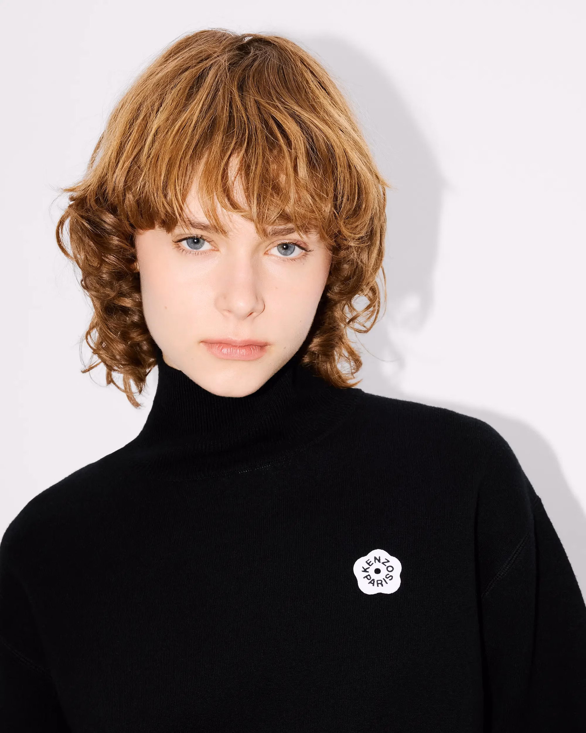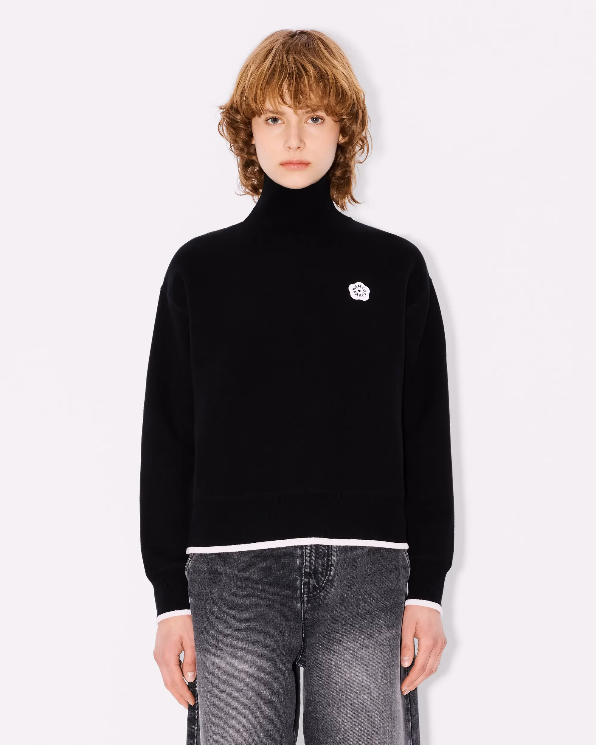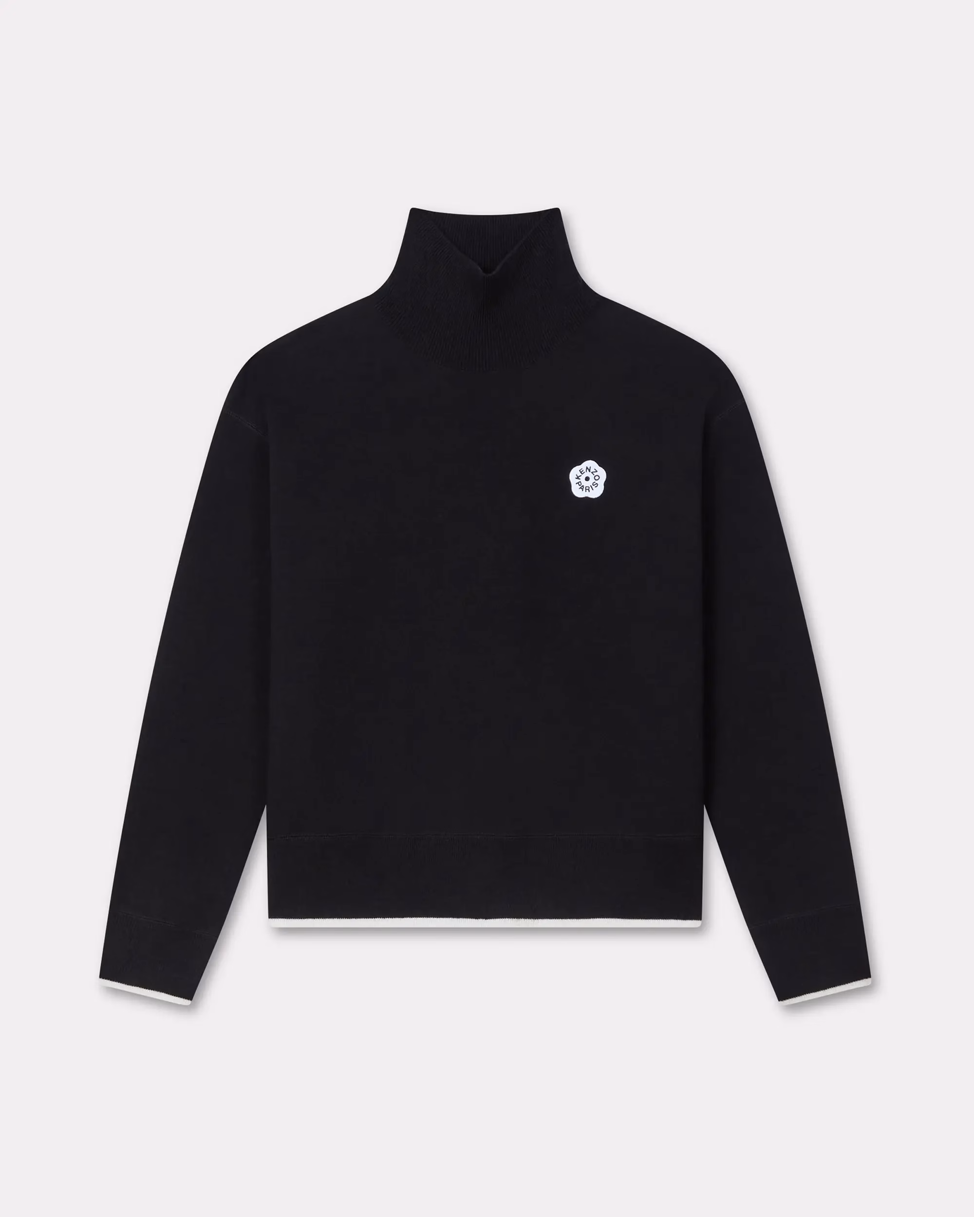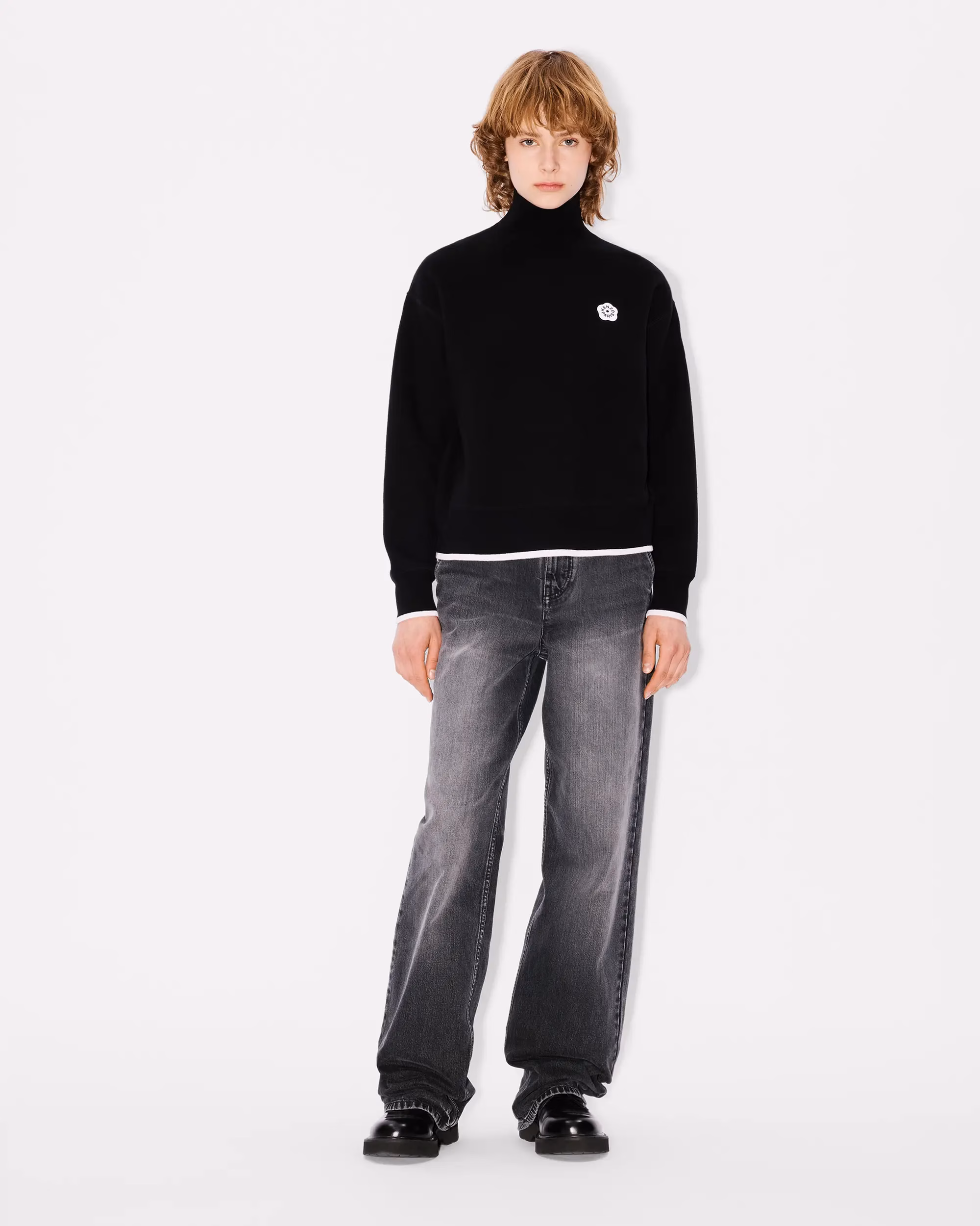 ‘Boke Flower 2.0’ high neck jumper. Wool and Cotton blend. ‘Boke Flower 2.0’ embroidery at chest. Contrasted hem ribs.