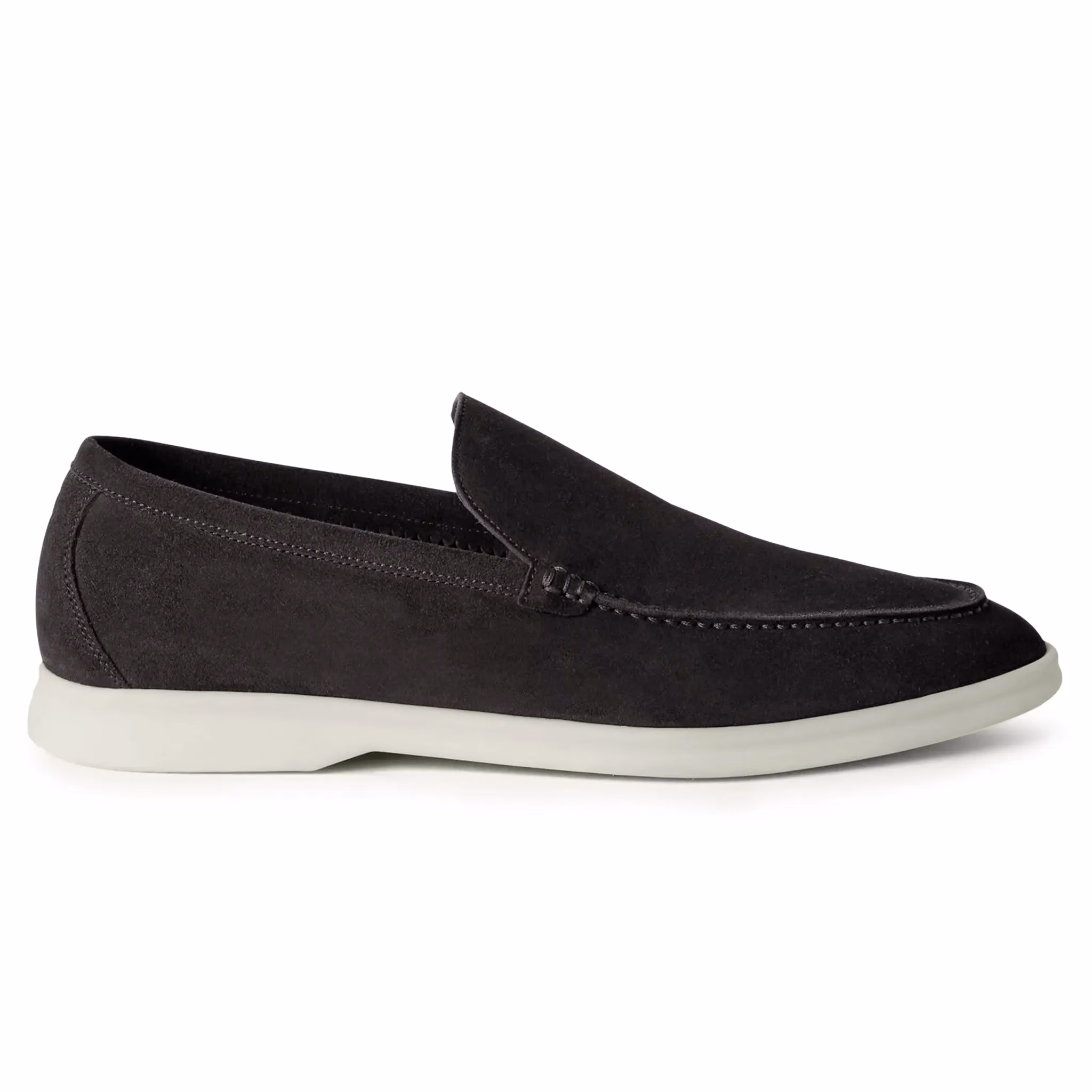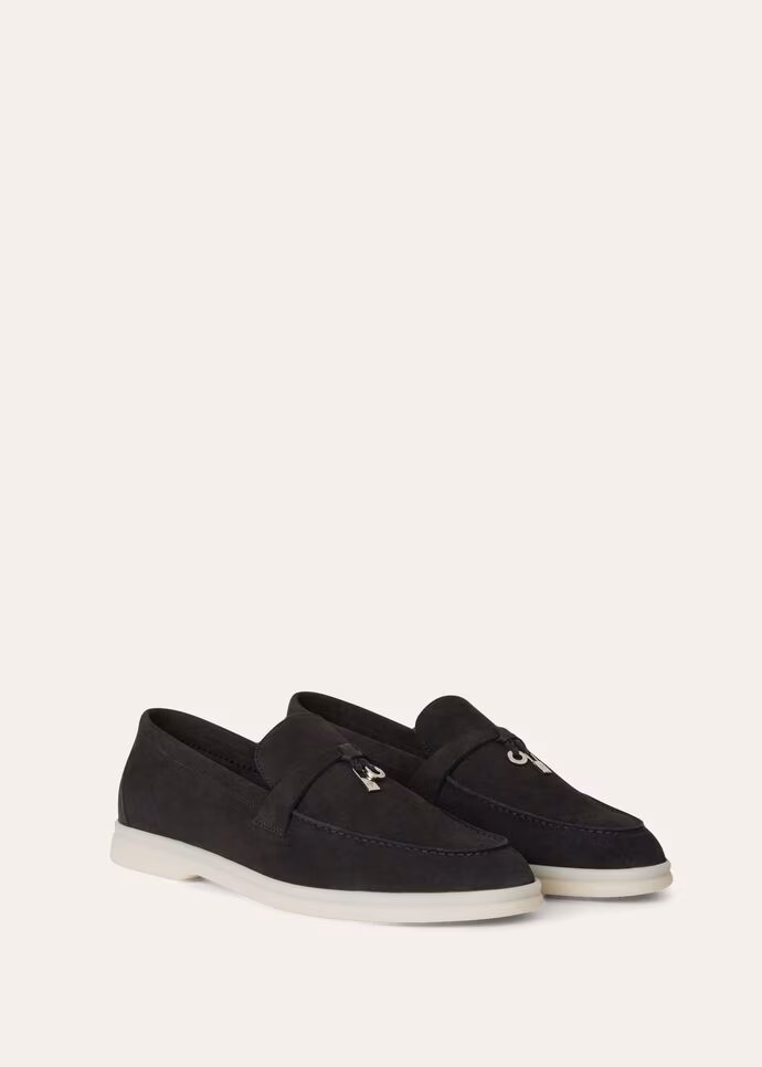 Loro Piana Summer Walk Suede Loafers are comfortable loafers crafted from soft suede and designed with rubber soles. They are a classic shoe style that has been in production since 2005. The shoes have non-slip soles with the Loro Piana monogram embossed on them.
