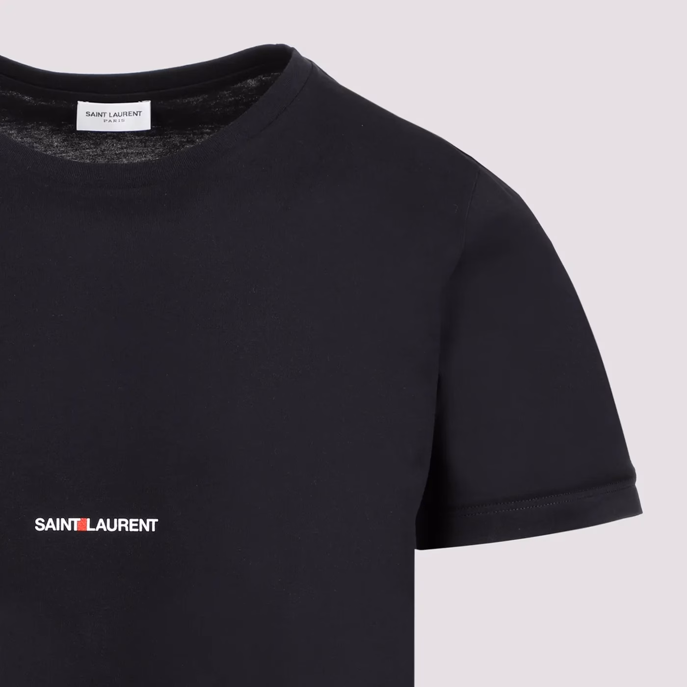 Saint Laurent Crew Neck Cotton T-shirt. Crafted in black cotton, rounded neckline, short sleeves, white contrasting logo on the front, straight hem.