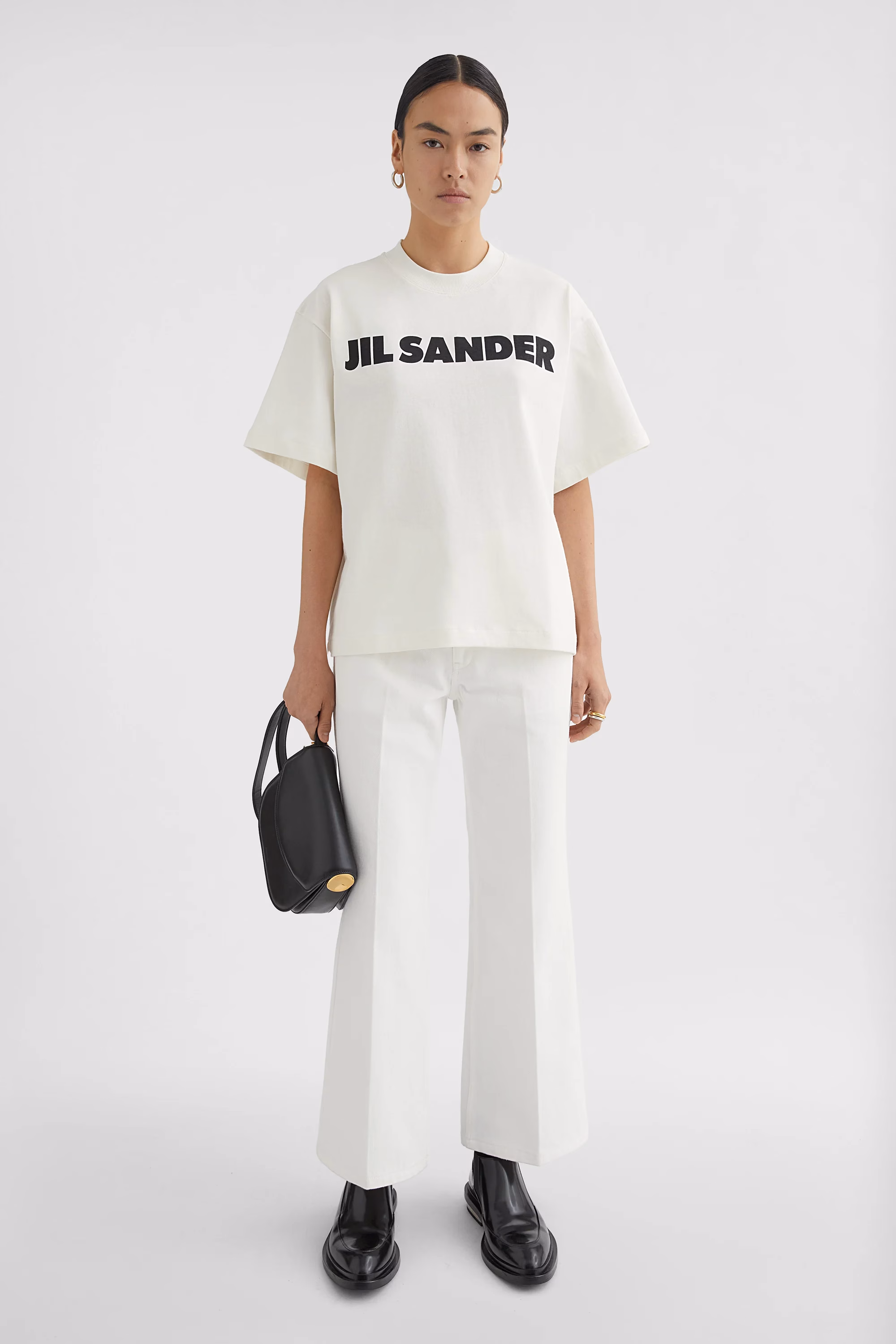 Stiff cotton jersey t-shirt with Jil Sander printed logo