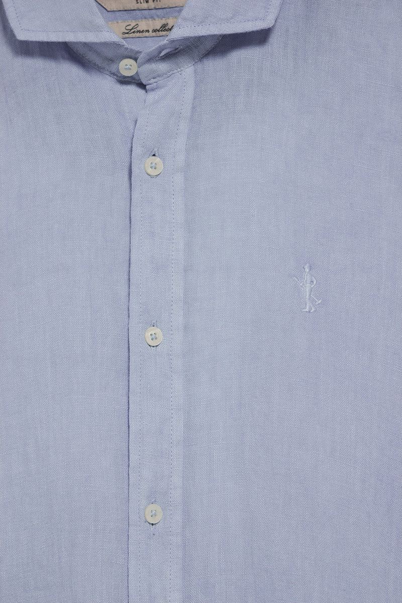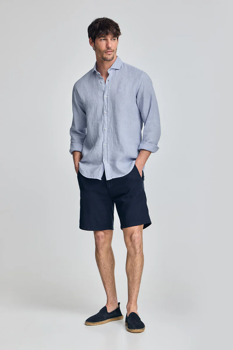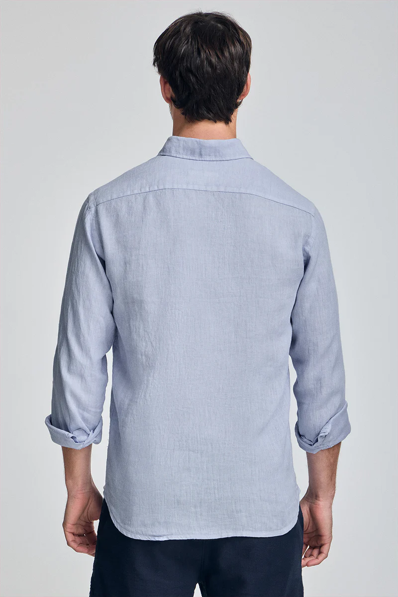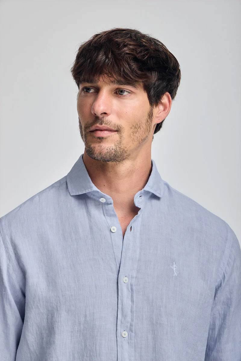 Kjo këmishë lino për meshkuj, me përfundim të lyer pas qepjes, është zgjedhja perfekte për një pamje njëkohësisht të sofistikuar dhe të relaksuar. Forma e saj e ngushtë dhe jaka italiane ofrojnë një siluetë të përsosur. Rripi i brendshëm i jakës, i lyer në të njëjtën ngjyrë me pëlhurën, dhe detajet në qepjet anësore sjellin një elegancë delikate pa sakrifikuar stilin e saj klasik. Kopsat me markë dhe vrima e fundit e kopsës e qepur horizontalisht janë detaje të një dizajni të rafinuar dhe të kujdesshëm. Qëndisja e re Rigby Best në gjoks shton një prekje dalluese që përmbledh thelbin e Rigby Go.